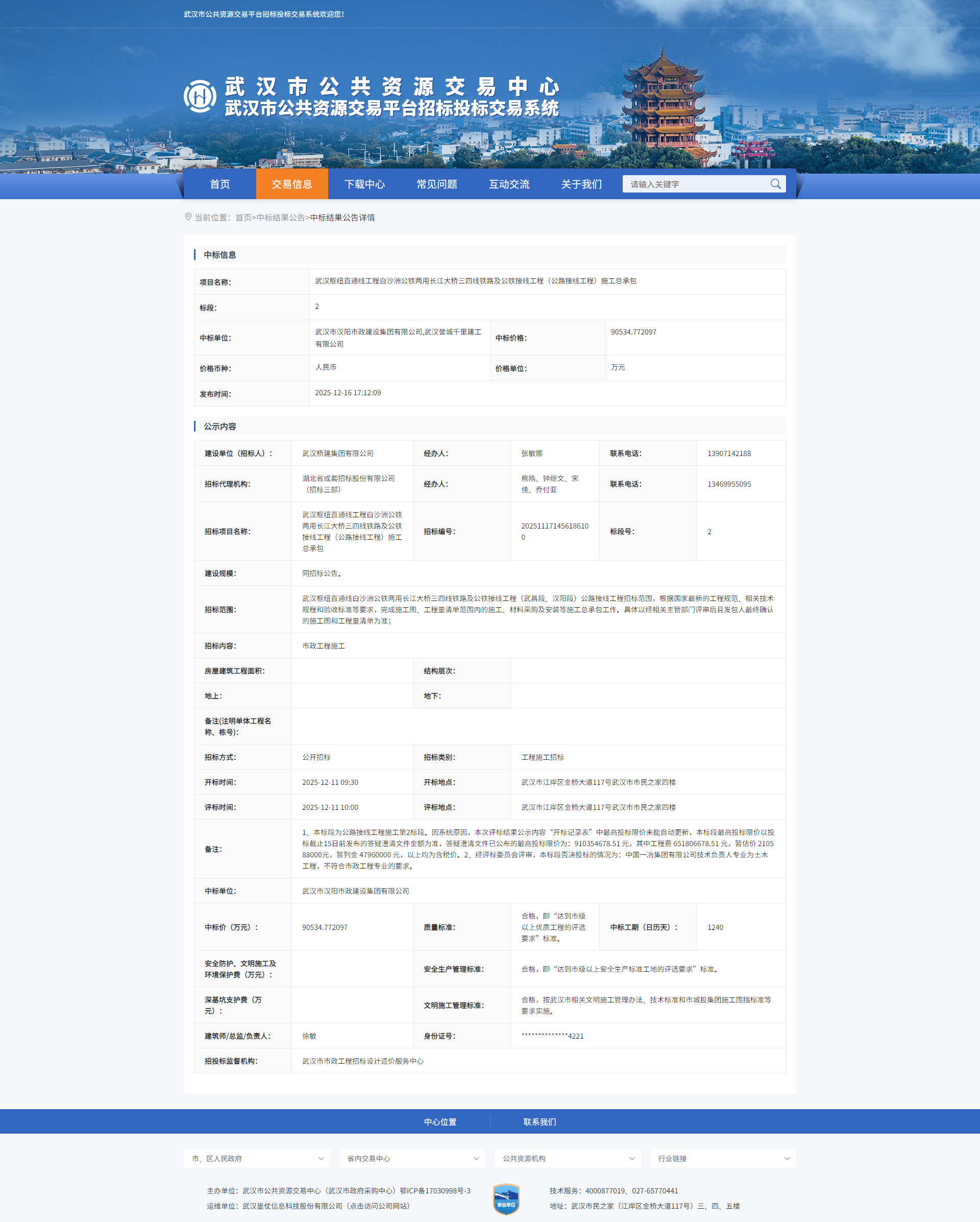 下一篇: 武汉枢纽直通线工程白沙洲公铁两用长江大桥三四线铁路及公铁接线工程(公路接线工程)施工总承包第一标段公开招标中标结果公告